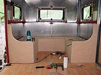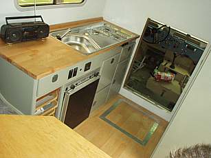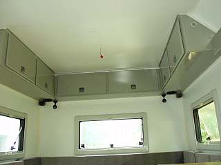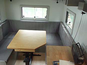 Das Gerüst ist aus Sahl, die Außenhaut wurde aus Alu gefertigt und die Möbel sind weitgehend aus MDF gebaut